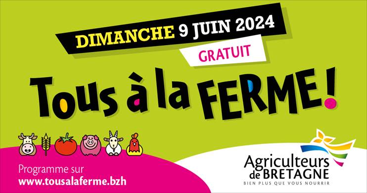 L’association Agriculteurs de Bretagne invite les Bretons à la 11ème édition de la journée « Tous à la Ferme ». Cette année 15 fermes ouvrent leur porte au grand public. L’édition 2023 a été un succès avec plus de 17 000 personnes qui se sont déplacées dans les 17 portes ouvertes.